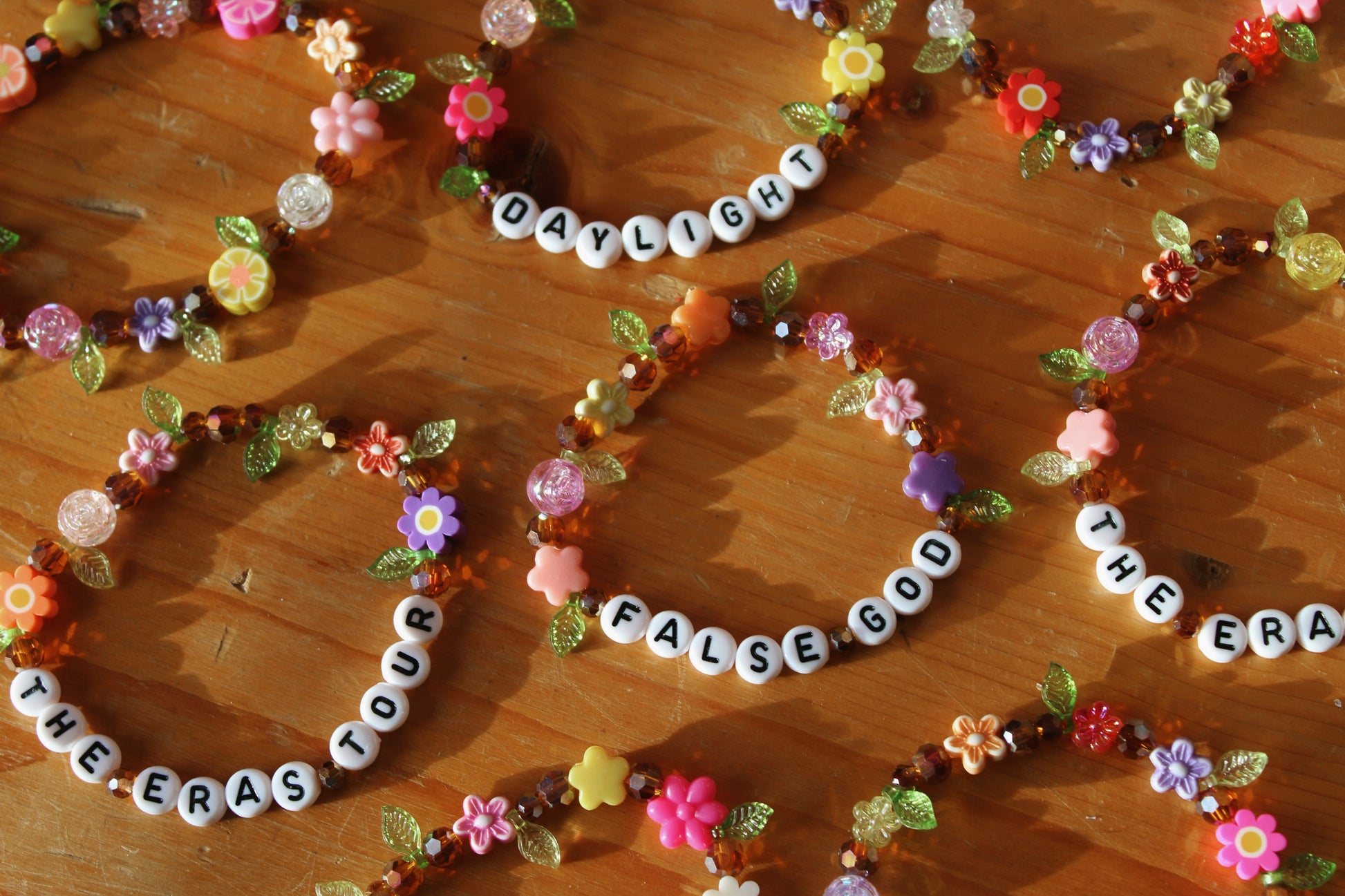 beaded friendship bracelets inspired by the eras tour / surprise song acoustic floral piano